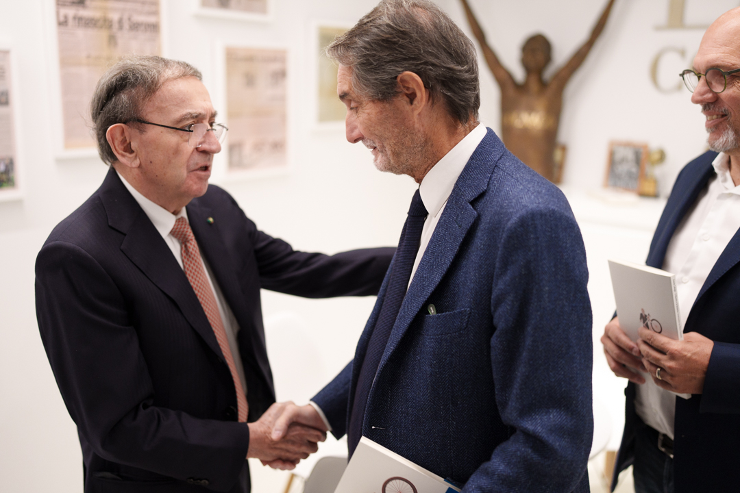 “È uno spazio da visitare – ha proseguito il governatore – un gioiello della memoria consigliabile non solo agli appassionati ma anche alle scuole. Sono custodite biciclette che rappresentano delle piccole opere d’arte. C’è il racconto di una lunga storia di amore per lo sport e di una grande imprenditorialità: l’essenza della nostra regione”. Alla visita ha partecipato anche l’assessore regionale agli Enti locali, Montagna, Massimo Sertori.