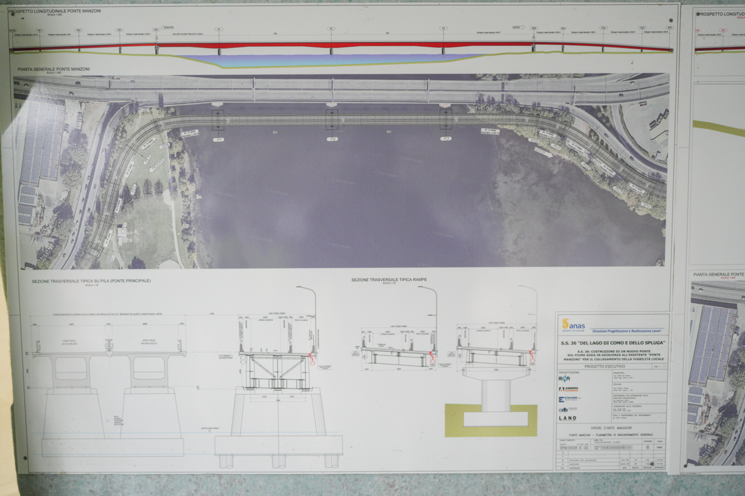 - il ponte sull’Adda, posto in totale adiacenza all’esistente ponte Manzoni, organizzato su quattro campate;